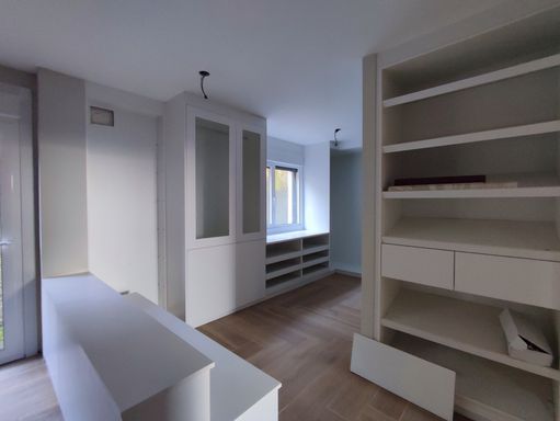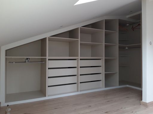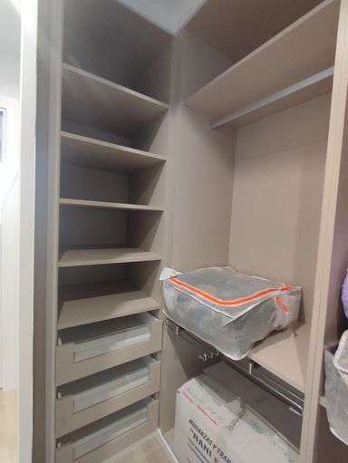 Pueden tener puerta de acceso o estar directamente abiertos hacia la habitación, para que puedas caminar en ellos. Se componen de cajoneras, perchas, estantes y están diseñados a medida según el espacio que quieras dejar en tu cuarto para la parte más importante del día: vestirse.
